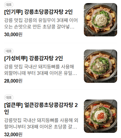 🍽️ 강릉 초당콩감자탕 대표메뉴