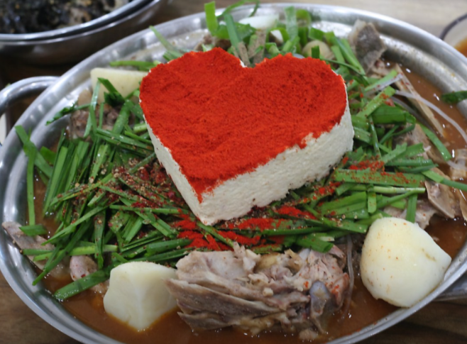 - 일반 감자탕과 달리 콩 성분을 더한 국물 베이스