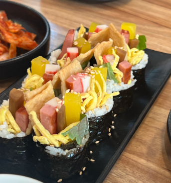 - 달걀지단, 채소, 고기 고명 등 다양한 색감