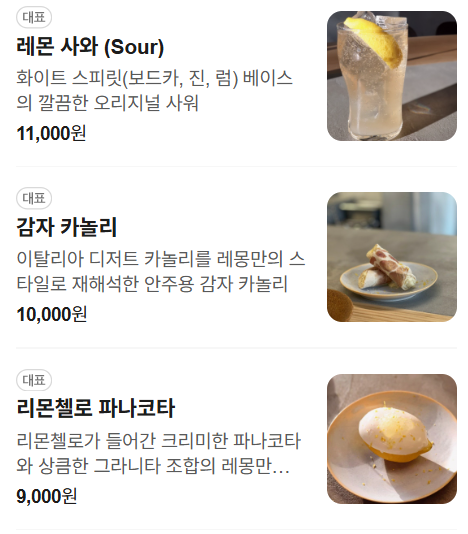 - 레몬 향과 맛을 좋아한다면, 이곳만의 독특한 메뉴 구성에 분명 만족하실 겁니다.