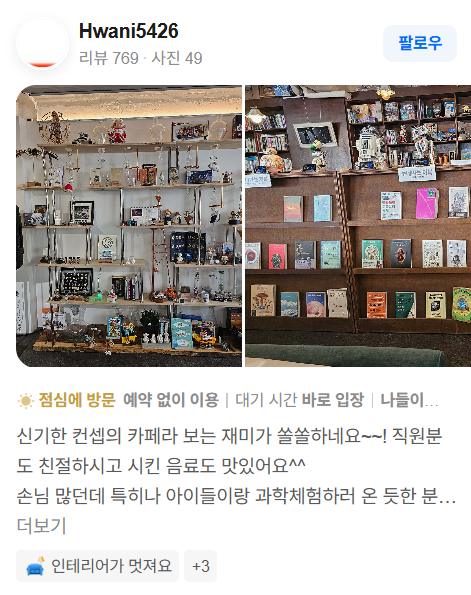 • 과학 책 및 키트 전시·판매, 실험 모형 등이 있어 아이들과 방문하기에도 적합하다는 리뷰가 많습니다.