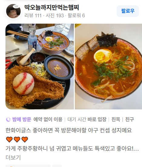 - “하이볼이 맛있어요. 요즘 느낌의 이자카야 가게입니다.” — 리뷰 통해 맛·분위기 모두 호평.