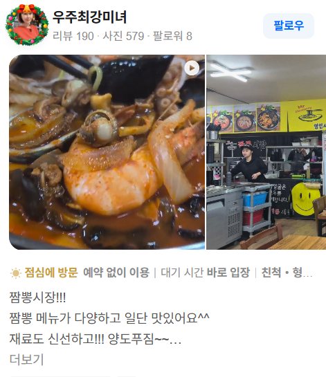 ✔ “해산물·명란이 들어간 짬뽕이 인상적이고 면·국물 조화가 좋다” — 블로거 후기