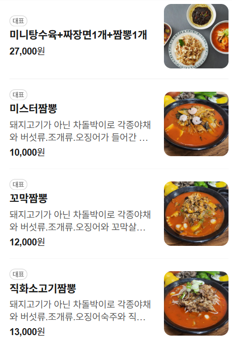 🔸 미스터짬뽕 & 일품 소갈비짬뽕 – 풍부한 고기·국물 맛