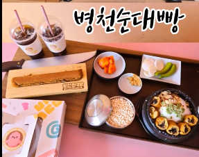 천안 병천 순대 국밥거리에 들어선 순대빵 베이커리 카페 입니다.