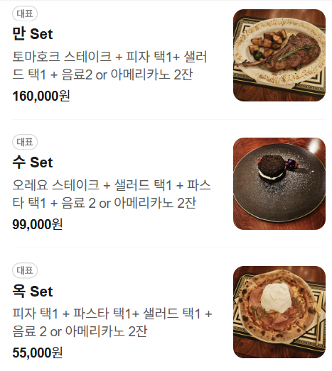 만수옥2는 세트 메뉴 구성도 있어,