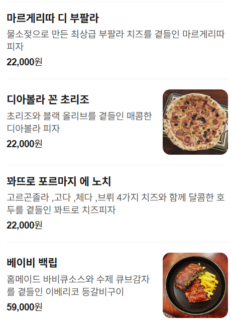 피자,파스타,스테이크,와인 등을 판매중이며 모든 음식은 수제로 요리하고 있습니다.
