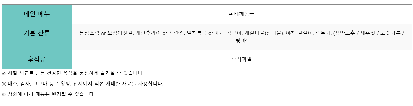 황태해장국을 포함하여 세미뷔페로 진행됩니다. (08:30-09:30)