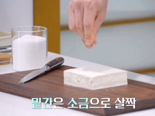 2. 두부 위에 소금 2꼬집을 뿌려 밑간한다.