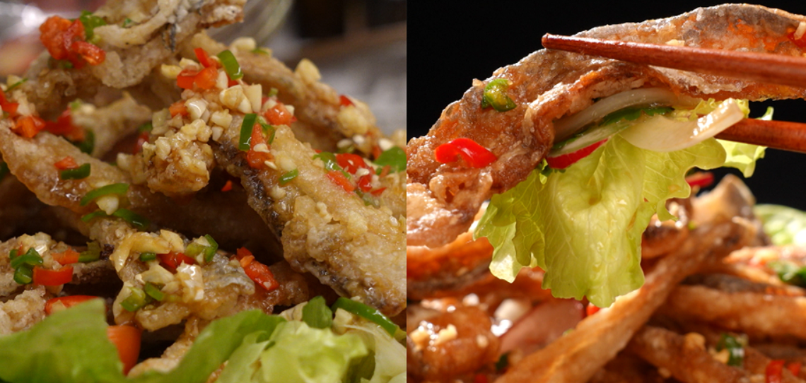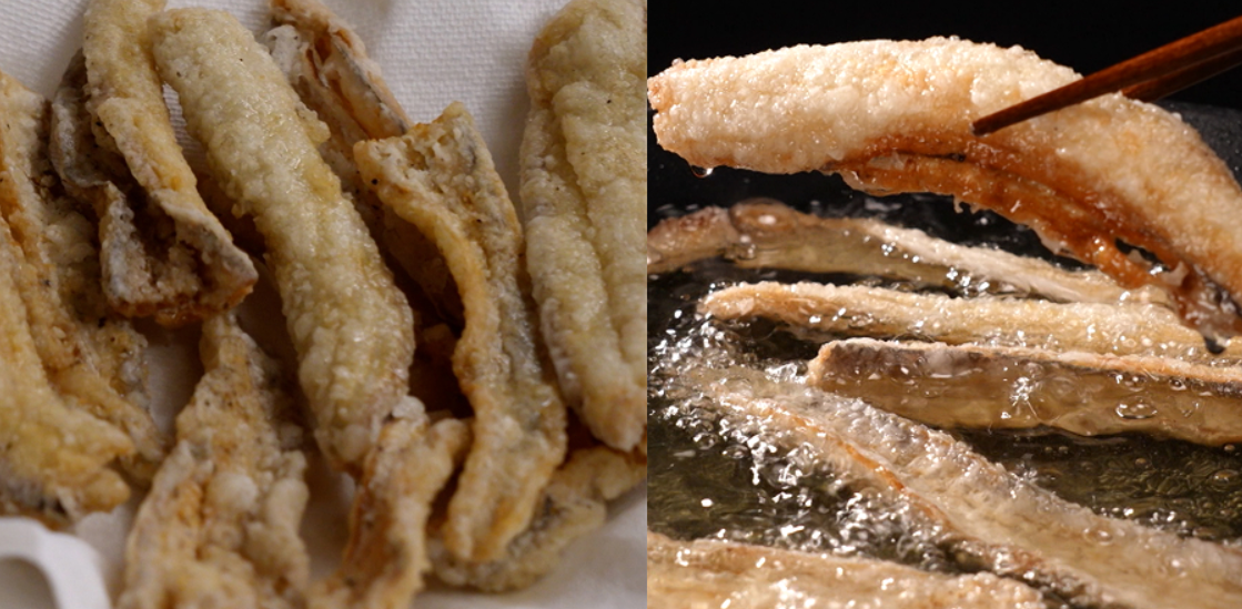 5. 기름에 4의 갈치를 다시 넣고 강불로 한 번 더 튀겨내 색을 낸다.