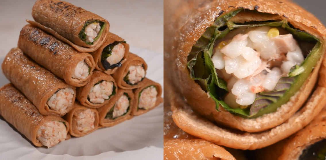 6. 토치로 유부 겉면을 살짝 태우듯 구워주면 완성!
