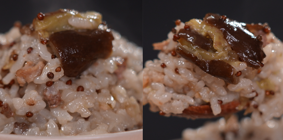 가지 1개, 돼지고기 다짐육 100g, 소고기 다짐육 100g, 쌀 1컵(200ml), 물 3/4컵(150ml),