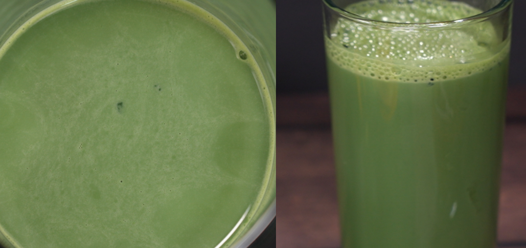 1. 두유에 쑥가루 듬뿍 1T를 넣는다.