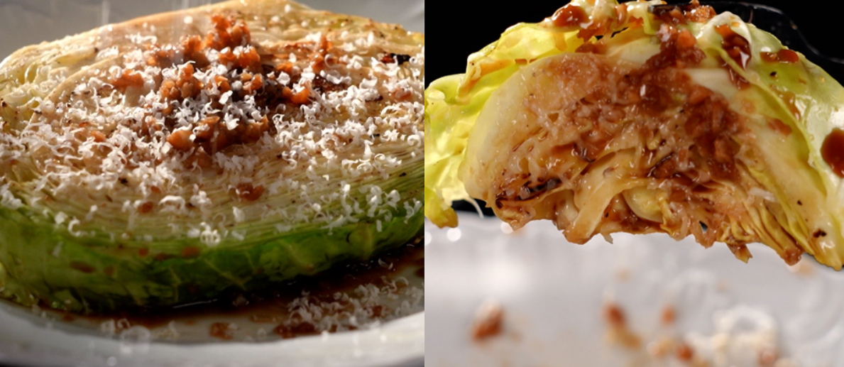 8. 구운 양배추에 7의 소스, 후추, 그라나파다노 치즈를 뿌리면 완성!