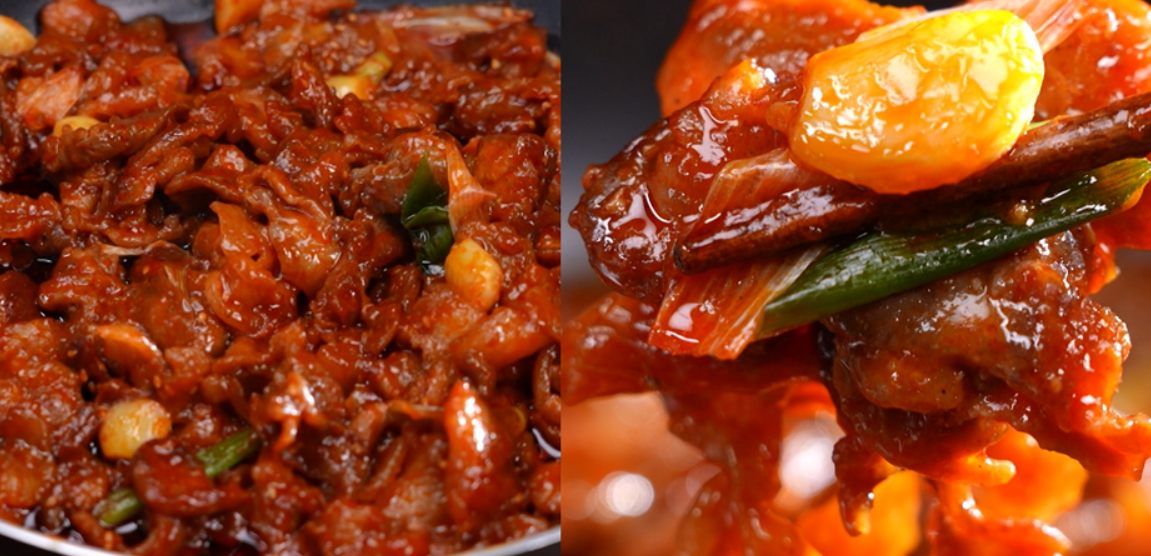 고기 기름에 고추장을 볶아 볶음고추장을 만드는 것이 포인트입니다!