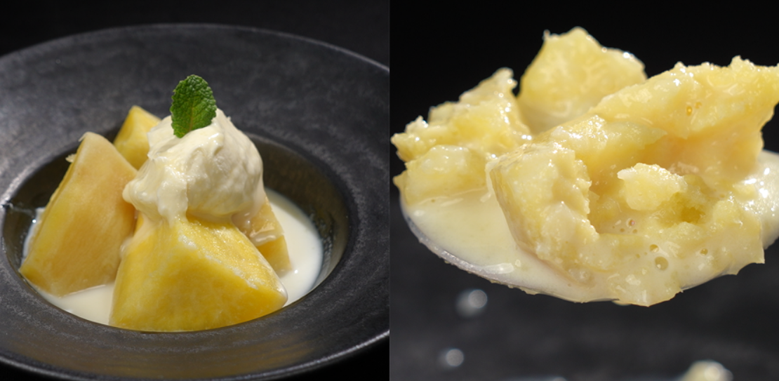 고구마 120g(고구마 1/2개), 우유 75ml, 설탕 1T, 마스카포네 치즈 1T