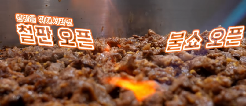 • 철판과 불쇼가 어우러진 화려한 갈비 요리 과정