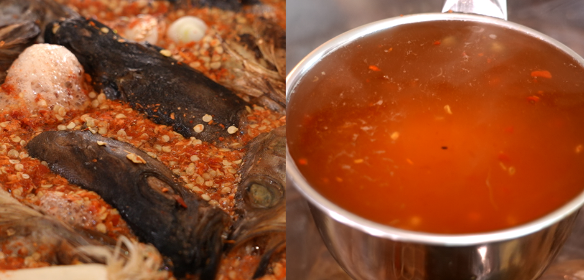 - 육수가 우러나면, 멸치, 디포리, 다시마를 건져낸다.