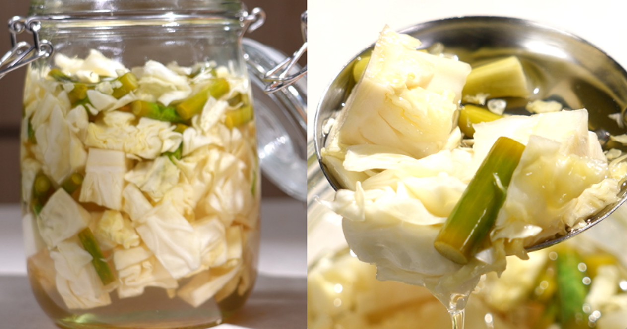 ※ 뜨거운 상태의 절임물을 바로 양배추심지에 부어주시면 더 아삭해집니다!