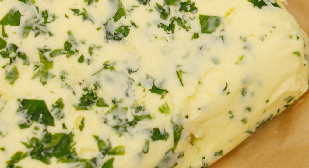 6. 냉동된 버터를 꺼내 적당한 크기로 자른 후, 기호에 따라 다진 허브, 말돈소금을 겉면에 바른다.