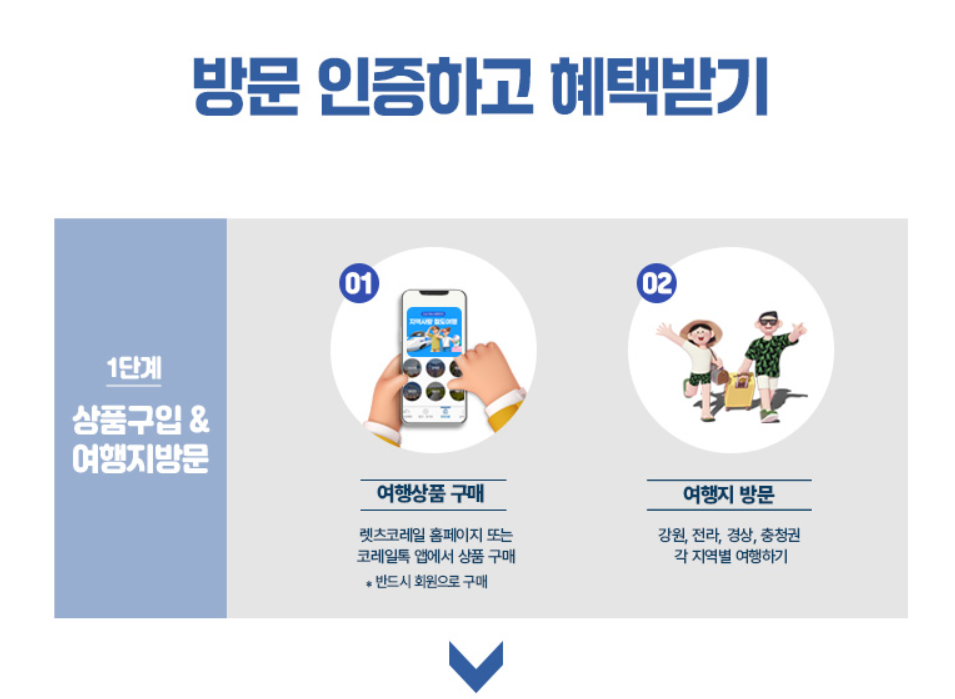 코레일톡 앱이나 레츠코레일 누리집에서 충남 시군 자유여행을 선택해 열차를 이용한 뒤 해당 시군의 주요 관광지(한 곳 이상)에 비치된 정보무늬(QR코드)를 통해 인증하면 다음 열차 이용에 사용할 수 있는 50% 상당의 할인쿠폰을 지급하는 방식입니다.