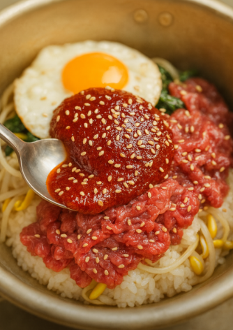 - 육회비빔밥 – 신선한 한우 육회가 듬뿍 올라가며, 노른자·참기름 등이 조화를 이룹니다.