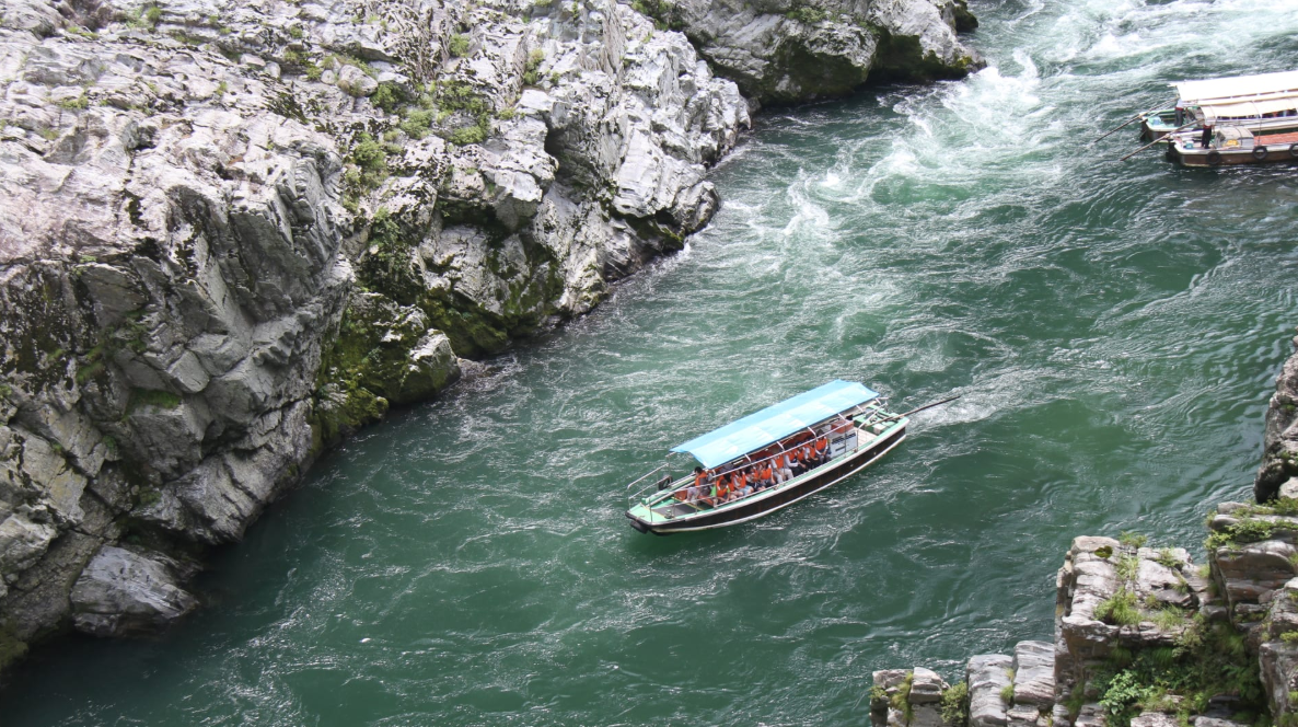 JR 도산선의 오보케 역에서 도보로 약 30분, 또는 차로 5분 거리에 있는 오보케 유란센(협곡 유람선) 터미널에서 승선 티켓을 구매하시면 됩니다.