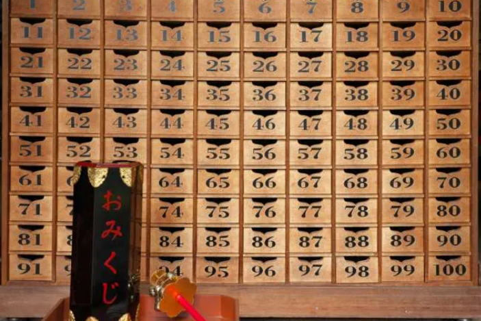 상자를 흔들어서 나오는 막대의 숫자를 보고 오미쿠지를 뽑는 것입니다.