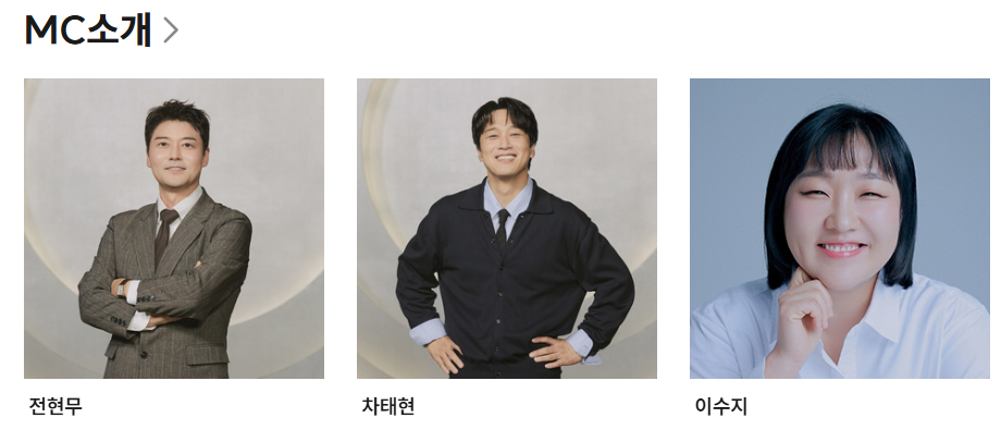 🎤 MC (진행자) 라인업 – 전현무, 차태현, 이수지