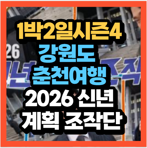 KBS 2TV 예능프로그램 '1박 2일 시즌4' 에서는 강원특별자치도 춘천시로 여행을 떠나는 멤버들의 '2026 신년 계획 조작단' 첫 번째 이야기가 펼쳐집니다.