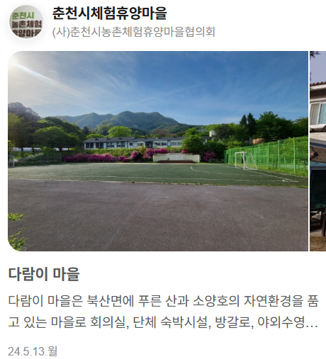 - 위치: 강원특별자치도 춘천시 소양호 인근 농어촌 지역