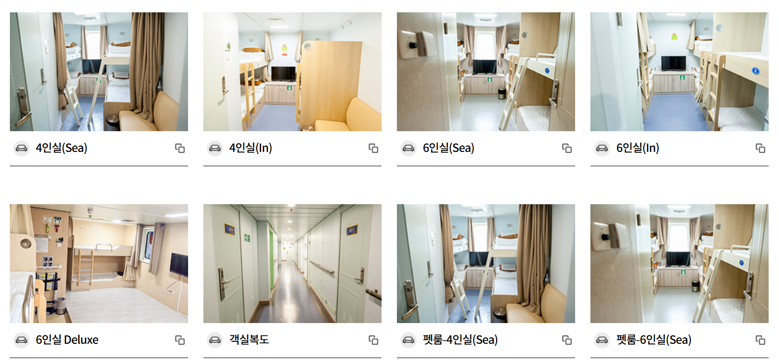 • 객실/좌석 타입 선택(2인실/4인실/6인실 등)