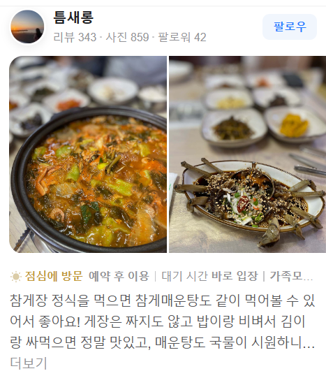 참게매운탕 예약 바로가기 >>
