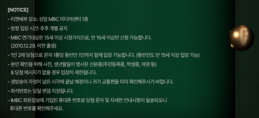 - ‘2025 MBC 연기대상 방청’ 클릭