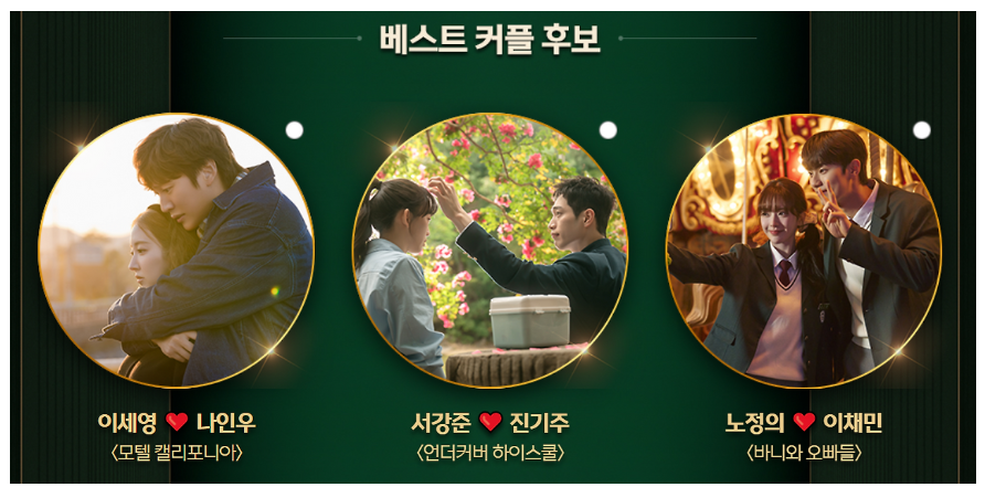 다양한 작품의 개성 넘치는 커플들이 후보에 올라 팬들의 선택을 기다리고 있습니다.
