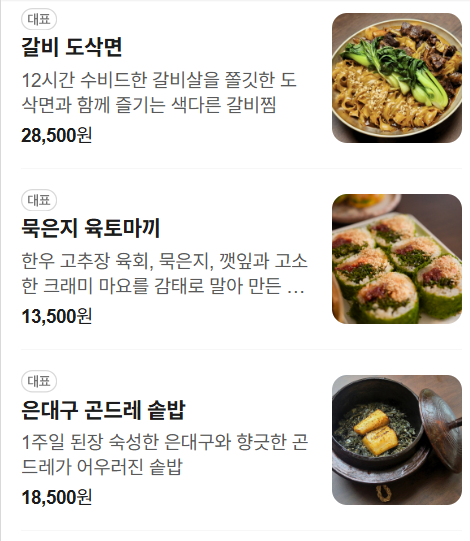 1️⃣ 깔끔한 한식 중심 메뉴 구성