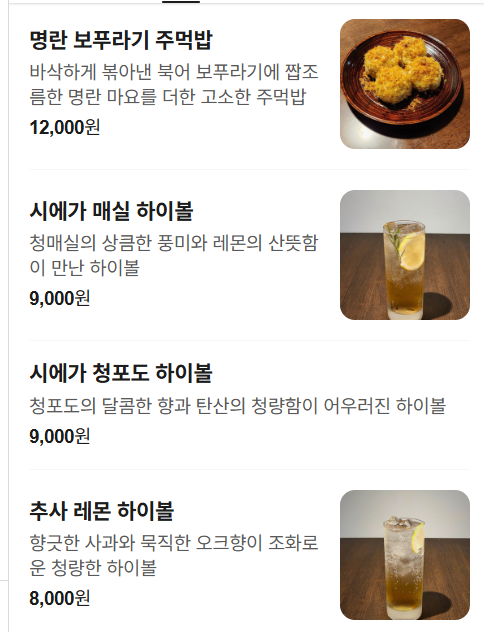 ※ 실제 메뉴 구성은 방문 시점에 따라 변동될 수 있습니다.
