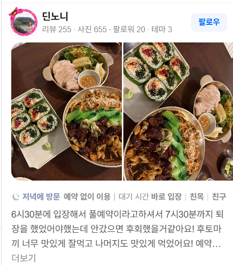 - “식사 시간대에는 다소 붐빌 수 있다.”