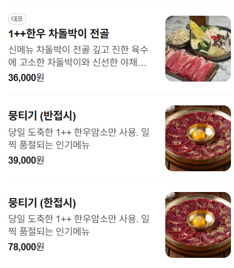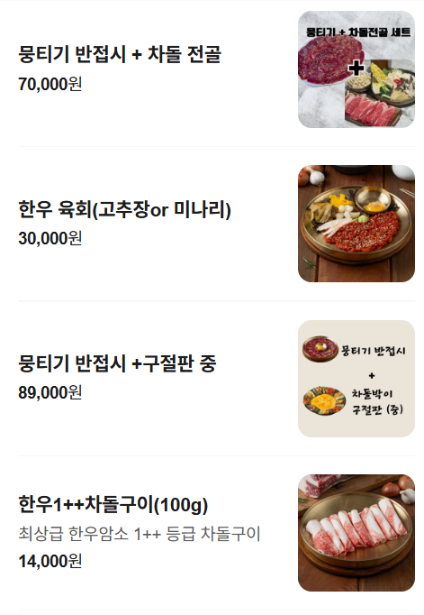 - 등심, 갈비, 특수부위 등 다양한 구성