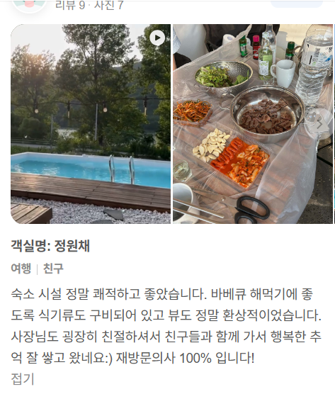 - 야외 바베큐·노천탕·스파 시설이 좋은 경험이었다는 후기