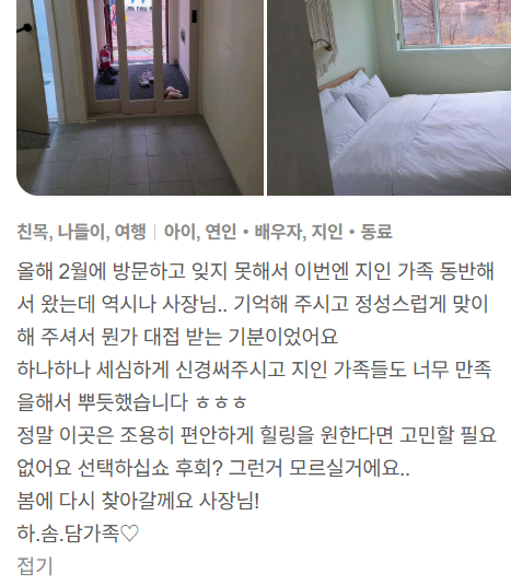 - 친절한 사장님 응대로 편안하게 머물렀다는 평가 다수