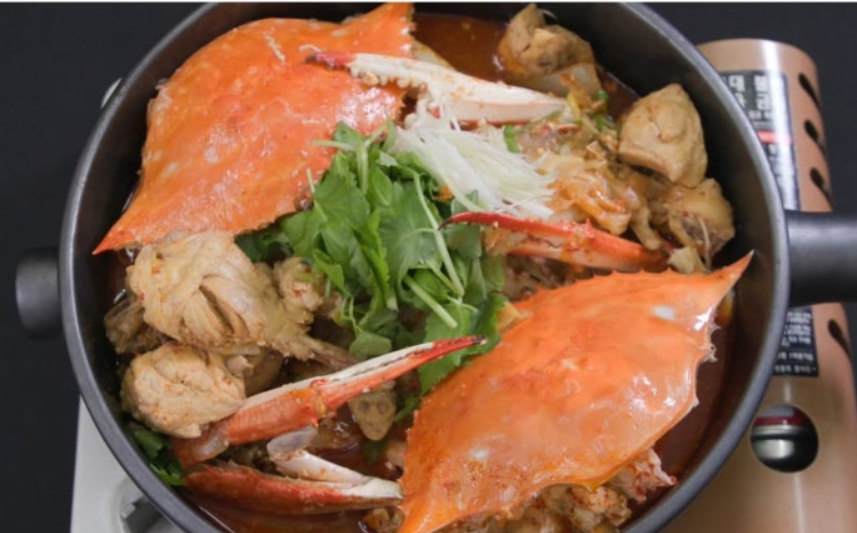 - 5분 뒤 손질한 꽃게와 썰어둔 양파, 청양고추를 넣고 6분간 더 끓인다.