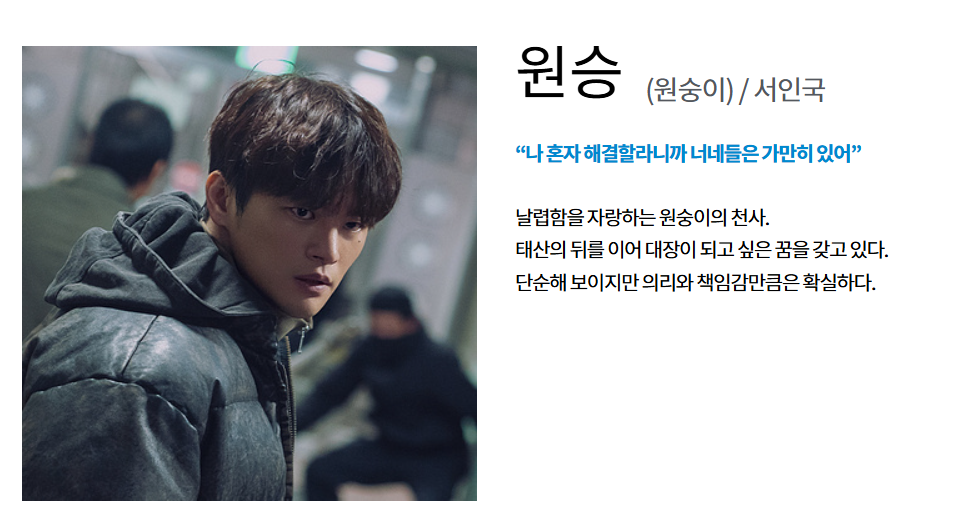 원승 (원숭이 천사) 서인국 민첩하고 재치 있는 차세대 리더 후보