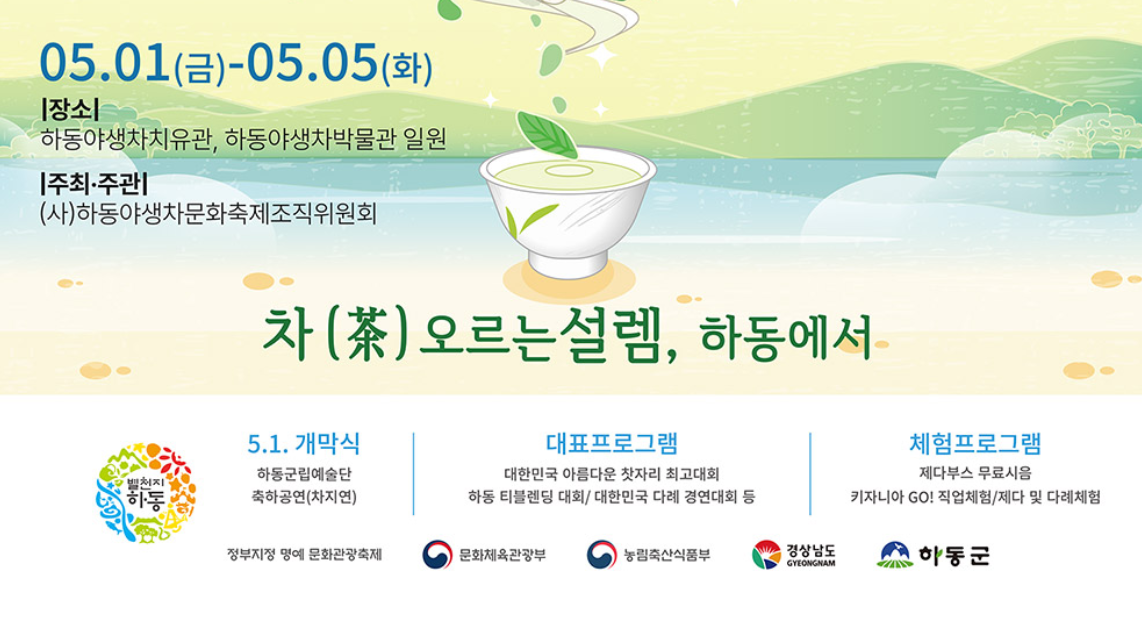 2026년 봄, 국내 대표 차(茶) 축제인 **제29회 하동야생차문화축제**가 개최됩니다.