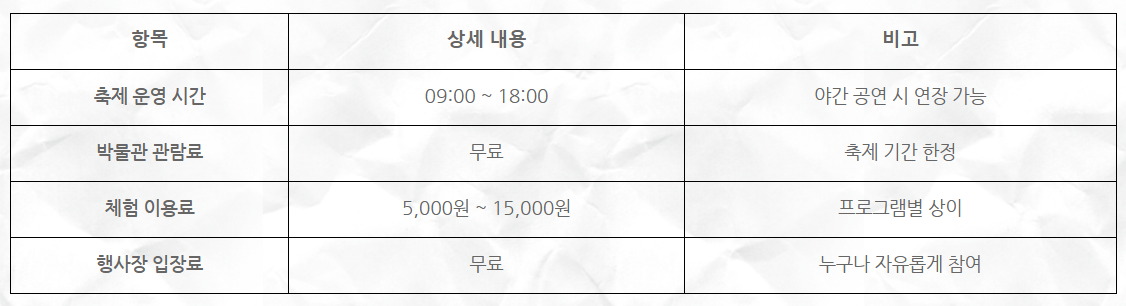 까지 더해져 가족 여행지 TOP급 축제로 평가됩니다.
