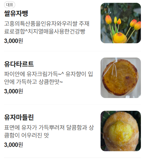 • ✔ 고흥 특산물 유자 활용 베이커리 전문점