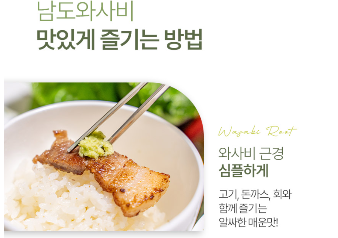 튜브 와사비와는 비교할 수 없는 깊은 향과 깔끔한 매운맛을 경험할 수 있습니다.