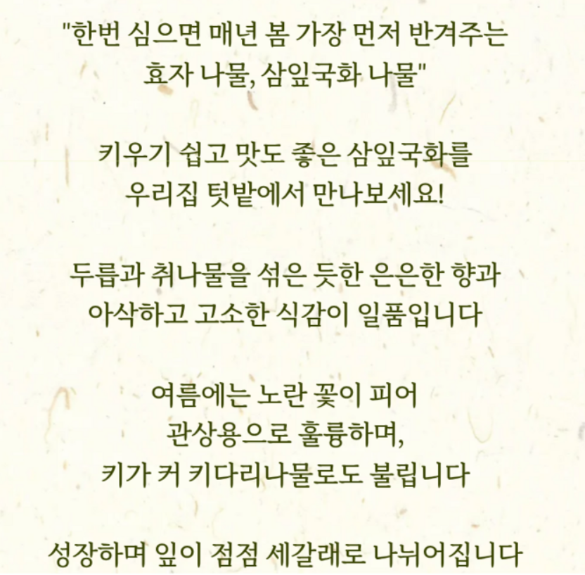삼잎국화는 단순한 나물이 아닌, 농가의 노력과 지역 지원이 만들어낸 성공 사례입니다.