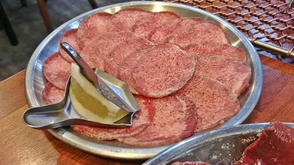 일반 고깃집에서 보기 어려운 두툼한 우설을
