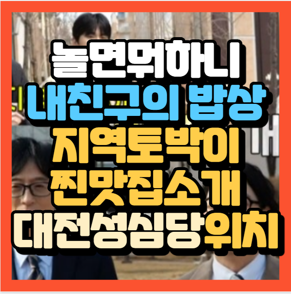 | 놀면 뭐하니 내 친구의 밥상 유재석도 반한 밥상의 정체? 임우일 밥상코스요리맛집 공개 위치 예약방법 (0) | 2025.03.29 |